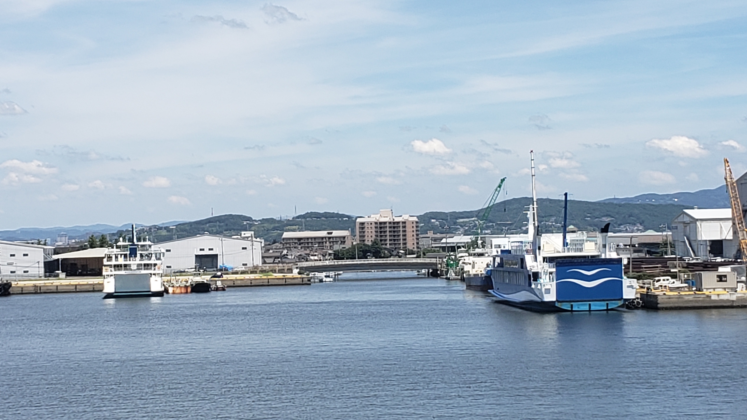 新岡山港は吉井川と旭川の河口にあり、市内から遠く不便な場所. ここに春に廃止になった草壁フェリーの