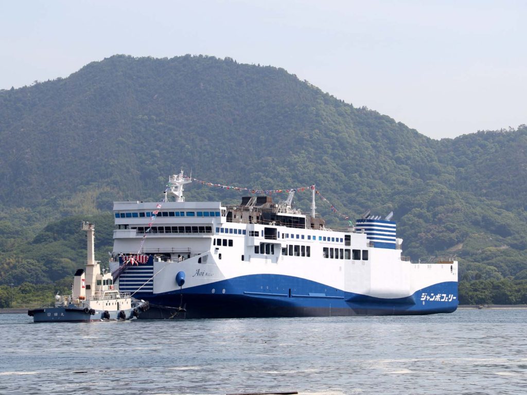 5月28日(土)にジャンボフェリー新造船「あおい」の命名・進水式のに参加しましたのでレポートします。