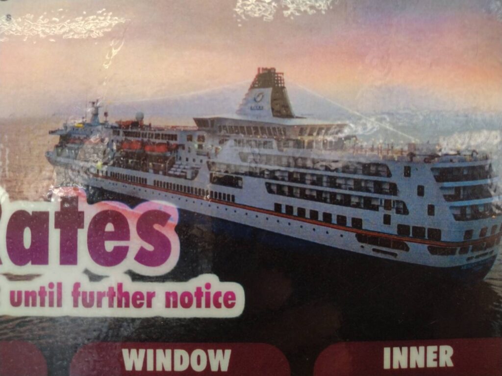 > ペナン島のクルーズターミナル内に、いくつもの旅行会社がカウンターを出していました。実際の船の写真は、シンガポールから乗船したゲンティンドリームから撮った、船尾しかありません。船尾については、海外売船されてすぐに、スポーツデッキをつぶしてキャビンを増設しています。その姿は、以前大阪に寄港した際 見たことがあります。