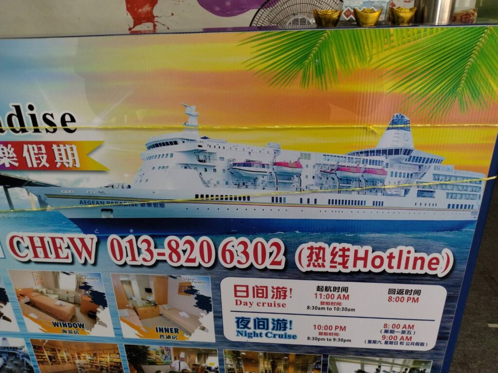 > 現在は、ペナン島を拠点に、ワンデイクルーズとワンナイトクルーズの一日2本を、ずっと繰り返しているようです。