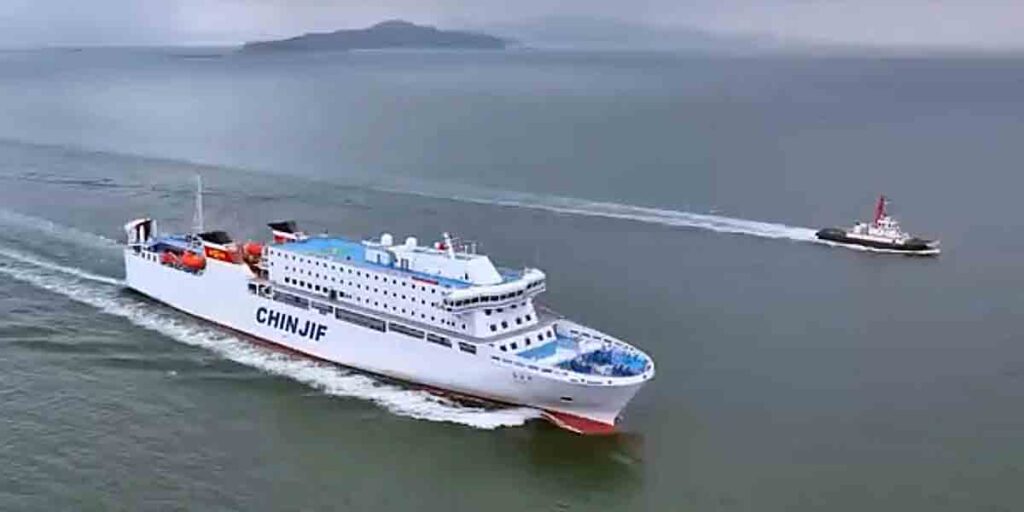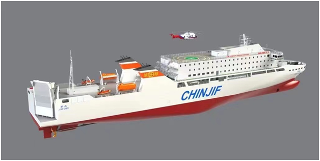 「新鑑真」の代替船で、中国の金陵船舶で建造され、インターネット情報によると海上試運転も行われているとのことです。総トン数は新鑑真の14543トンから2万トンと大きくなり、全長167.2m、型幅25m。旅客定員は192名、コンテナ積載数は338TEU。阪神(大阪/神戸)から上海まで2泊3日の旅となりますが、旅客の扱いは9月頃から再開の予定とのことです。