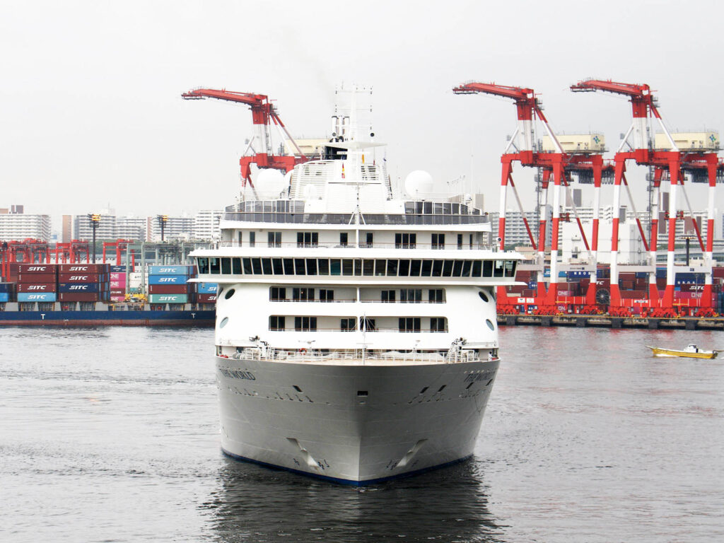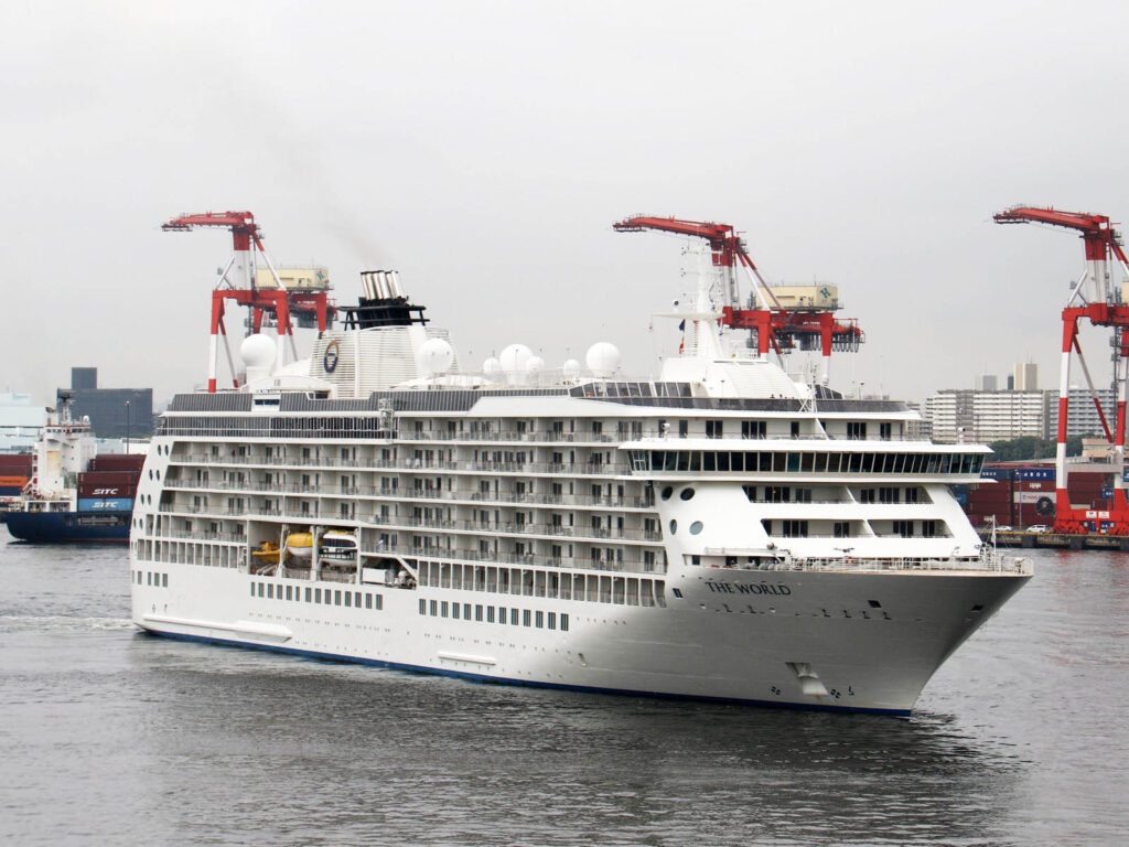 7月17日(水)東京港国際客船ターミナルへ米国レジデンシー社が運航する世界最初にして唯一のマンション型客船・・・The Worldが入港しました。長崎、神戸を経由して東京港への入港でした。東京では3日間の停泊のようです。行程は発表されていないので次の寄港地はどこでしょうか・・・?