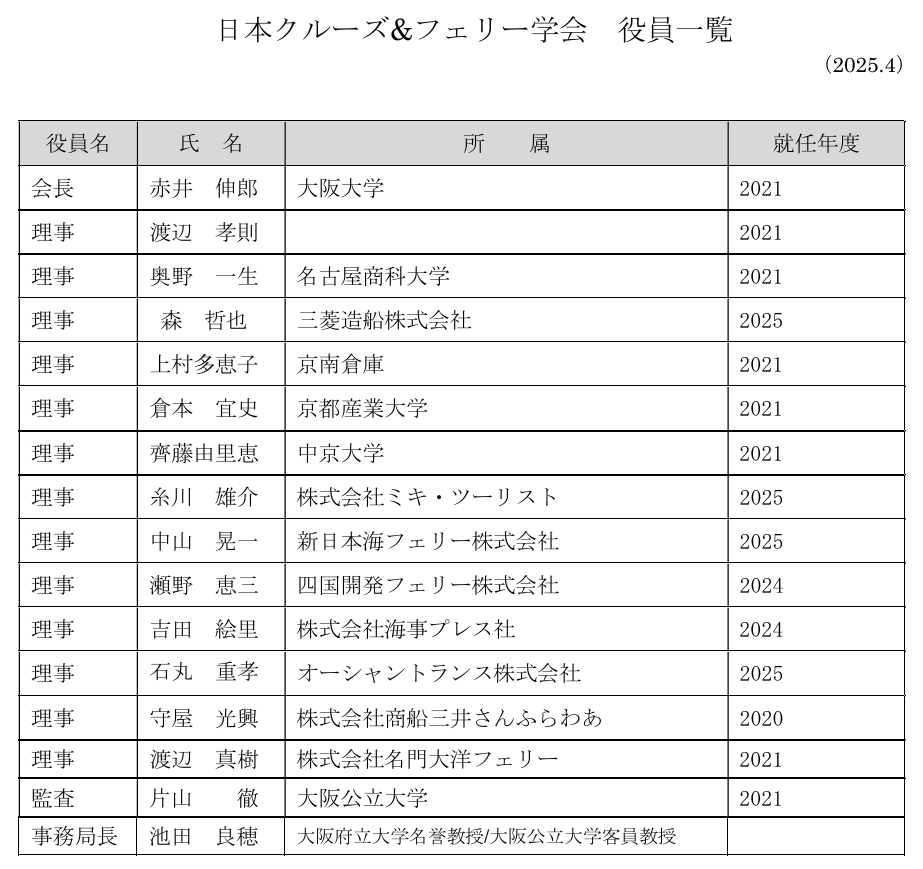 日本クルーズ&フェリー学会の入会・退会について入会・退会
