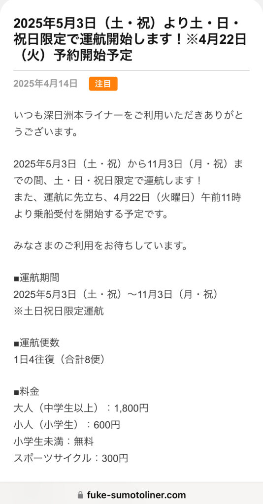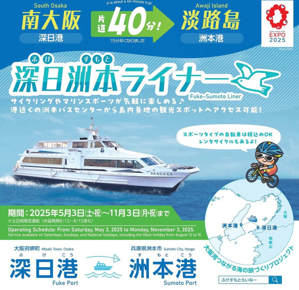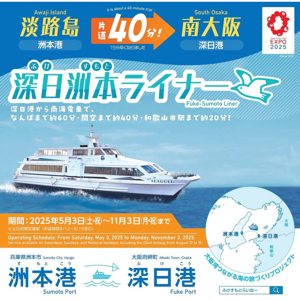 保井太郎です。岬町から深日洲本ライナーの運航の発表がありました。船もかわり、時間も短縮、定員も増えました。料金は上がりました。ぜひ、船による都会でない地方の地域活性化の取り組みの先例ですので、ぜひご利用いただければと。取り急ぎ報告まで。