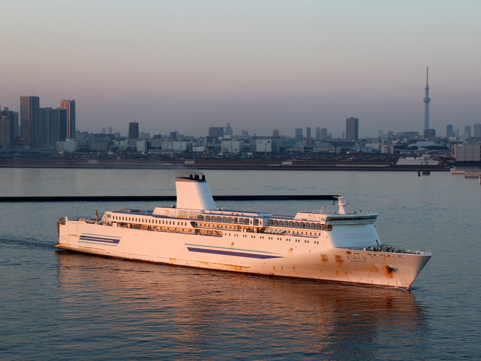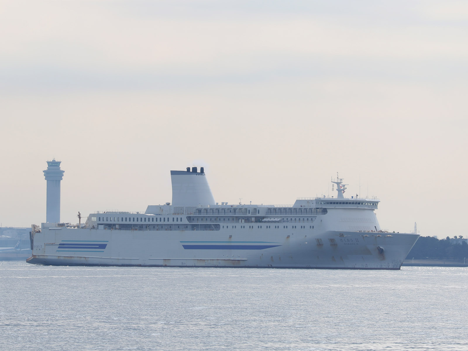 2026年2月13日(金)旧、新日本海フェリーのはまなすで、防衛省にチャーターされたはくおうⅡが初めて東京港へ入港しました。中央防波堤内側という桟橋で13時入港、17時出港というスケジュールでした。東京西航路から入り東航路へ抜けるという動線でした。17時ちょっと前に夕陽に染められて東京ゲートブリッジを潜り、大分へ向けて出航していきました。今回は塗装はされていませんでしたが塗り替えるときは白と黒のツートンになるのでしょうか?